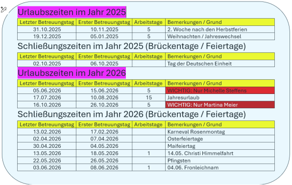 Unsere Urlaubszeiten in 2025/2026